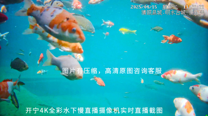 “墨泉下的锦鲤正在群游,想近距离观赏的朋友,从古城南门进入左转50米即达”——明水古城的官方直播间里,没有喧闹解说,只有水下镜头传来的实时画面:锦鲤在光影中穿梭,尾鳍拨动水流。开宁4K黑光臻全彩水下慢直播摄像机,让明水古城的“水下风景”成了新晋网红地标。