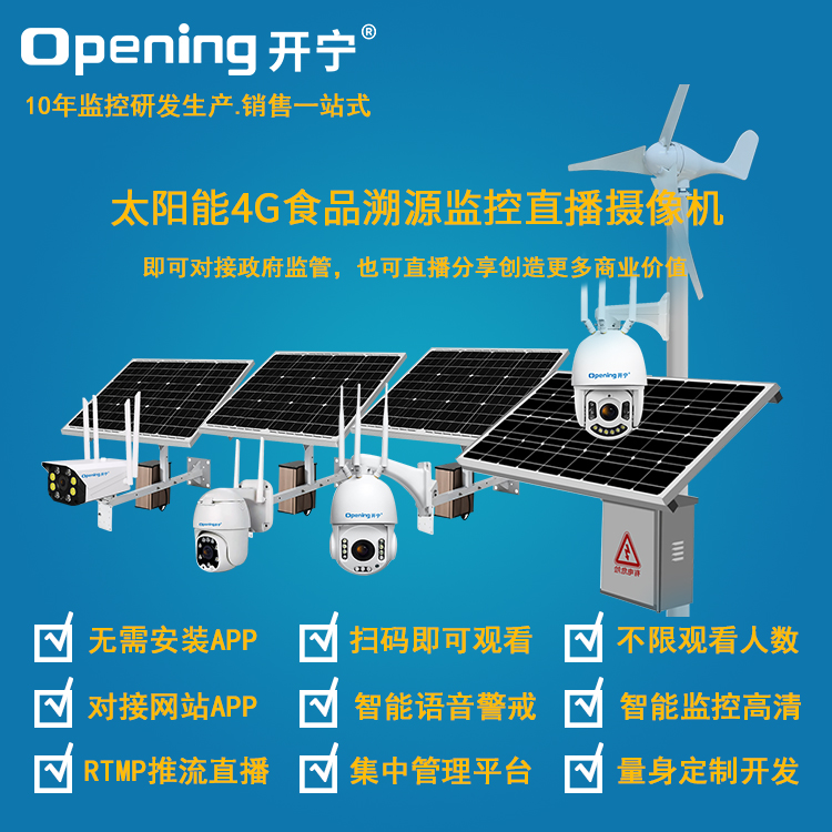 - 1、 太阳能4G食品溯源监控直播摄像机,一个摄像机就是一套监控直播系统;政府监管好帮手;