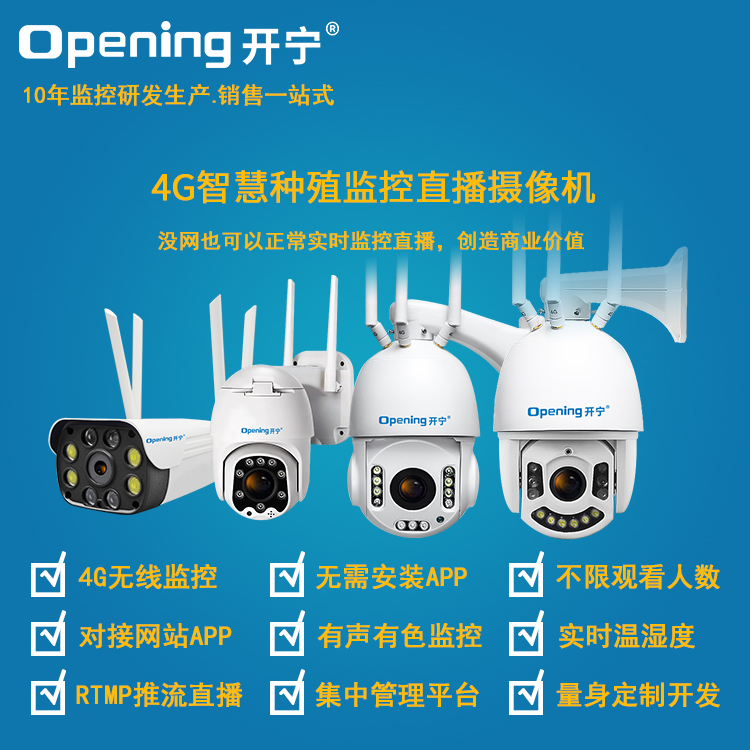 - 1、4G智慧种植监控直播摄像机,一个球机就是一套监控直播系统;支持360度旋转,支持预置点和巡航,30倍光学变焦,IP66防水等级;
