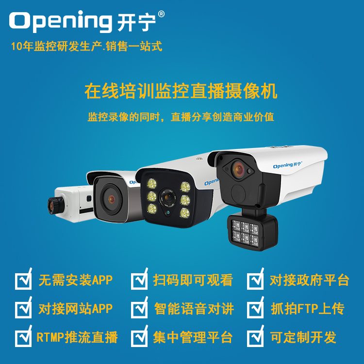 - 1、在线培训监控直播摄像机,一个直播摄像机就是一套监控直播系统;