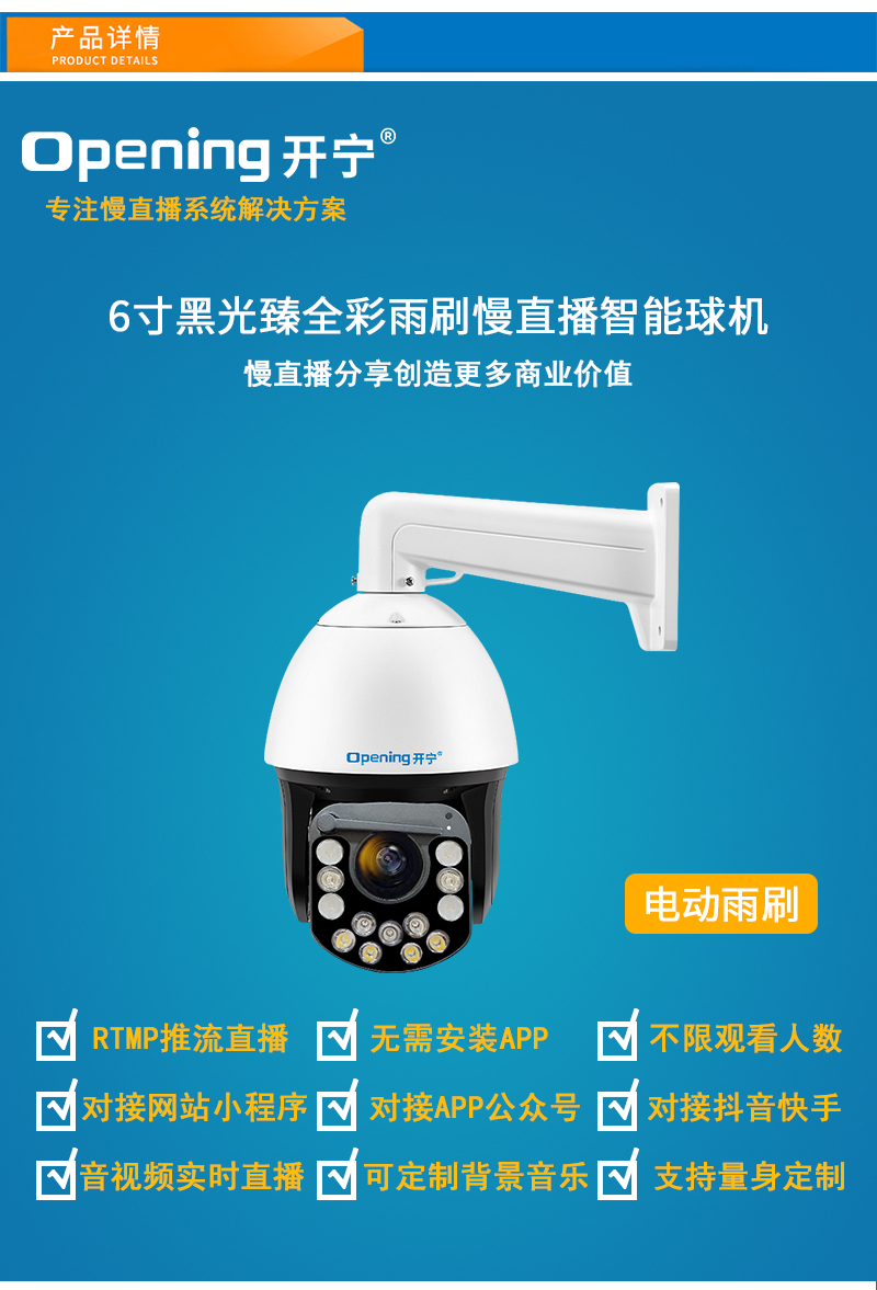 - 6寸4K800万黑光臻全彩高清慢直播雨刷球机